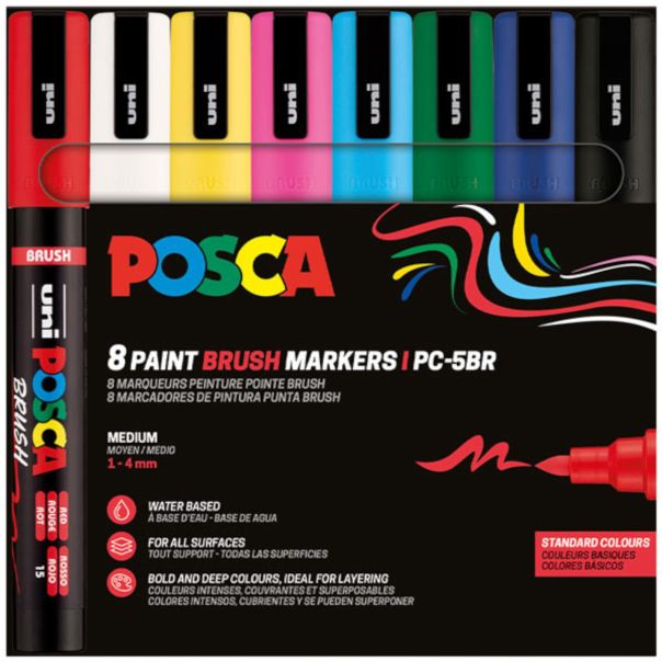 POSCA Marker Set PC-5M Brush 8/1 – Profesionalna kontrola poteza
