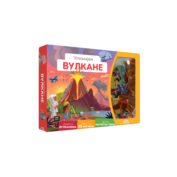 Nauči sve o fenomenima koji oblikuju našu planetu!Uz interaktivni set koji uključuje poučnu i živopisnu knjigu, više od 35 magneta i magnetnu tablu, deca će se istovremeno zabavljati, razvijati maštu, motoriku i otkrivati neverovatne činjenice o vulkanima.Saznaće kako oni nastaju, koliko ih ima, od čega se sastoje, šta odlikuje vatreni pojas, kada se dogodila najveća erupcija i još mnogo toga... Takođe, imaće priliku da sastave unutrašnjost aktivnog vulkana, vulkansku erupciju i zaštitnu opremu vulkanologa.Pročitajte knjigu zajedno, otkrijte zanimljivosti sa svake stranice, objasnite im nepoznate pojmove istaknute na kraju knjige, a zatim im prepustite sastavljanje velikog vulkana!Godina_Izdanja:2025.|Format:15x21 cm|Povez:Mek|Pismo:Ćirilica|Izdavac:Publik Praktikum|Autor:Auzou|Zanr:Knjige za decu, Edukativni|Broj_Strana:0