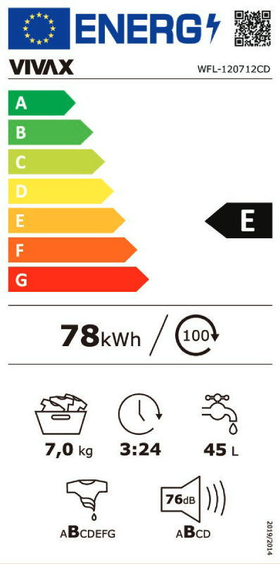 Sa energetskom efikasnošću klase E, ova mašina je dizajnirana da smanji potrošnju energije, dok nivo buke od 76 dB osigurava relativno tihi rad, što je idealno za korišćenje u stambenim prostorima.