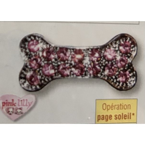 Dekorativna šnala za pse, oblikovana u obliku klasične pseće koske, ukrašene cirkonima, namenjena malim i srednjim rasama. 3 cm