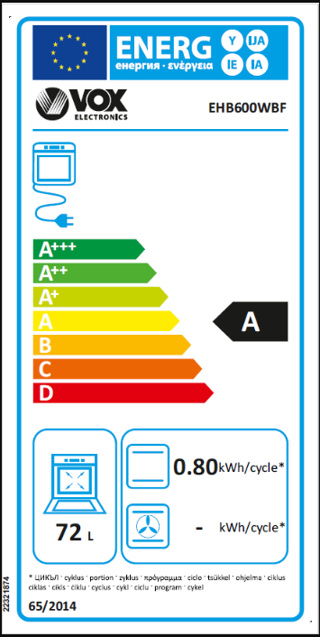 | Naziv, vrsta robe i model | Električni šporet Vox EHB600WBF |