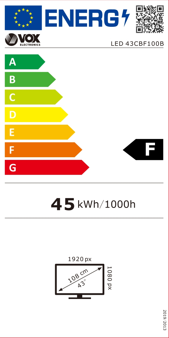 | Naziv, vrsta robe i model | VOX Televizor 43CBF100B, Full HD |