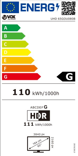 | Naziv i vrsta robe | VOX Televizor 65GOU080B, Ultra HD, Google TV Smart |