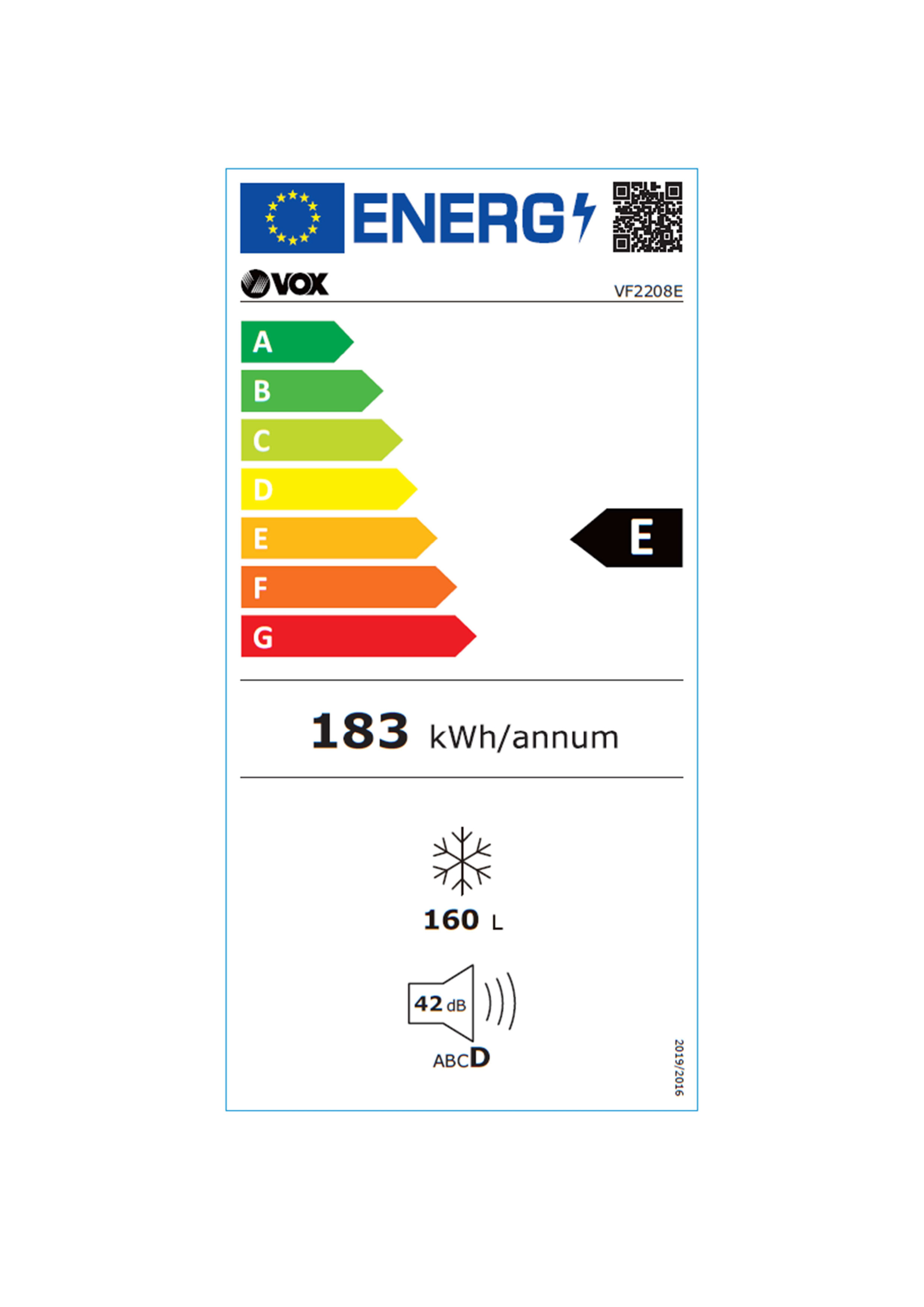 VOX Vertikalni zamrzivač VF 2208 E je dizajniran da zadovolji sve vaše potrebe za zamrzavanjem, uz zadržavanje energetske efikasnosti. Sa godišnjom potrošnjom energije od 183 kWh, ovaj zamrzivač spada u energetsku klasu E, što ga čini ekonomičnim izborom za vašu kuhinju.