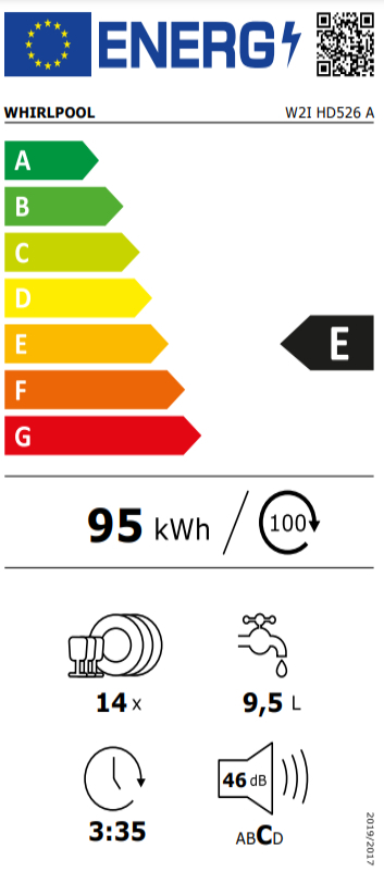 WHIRLPOOL ugradna mašina za pranje sudova W2I HD526 A nudi impresivan kapacitet punjenja od 14 kompleta, što je čini idealnim izborom za veće porodice ili one koji često organizuju večere. Sa energetskim razredom E, ova mašina pruža efikasno pranje uz uštedu energije.