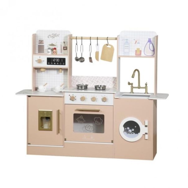 Otkrijte ultimativno iskustvo igre uz našu veliku drvenu kuhinju za devojčice! Izrađena s pažnjom na detalje, ova stabilna i elegantna kuhinja osmišljena je da inspiriše sate maštovite zabave. Od realističnog šporeta i rerne do sudopere i prostora za odlaganje, svaki element podstiče kreativnost, igru uloga i socijalnu interakciju. Savršena za male kuvarice, ova kuhinja dolazi sa preslatkim dodacima i lako se otvara, čineći je divnim dodatkom svakoj dečijoj sobi. Napravljena od visokokvalitetnog drveta, dugotrajna je i pruža bezbednu, ekološki prihvatljivu igru. Gledajte kako oživljavaju kulinarski snovi vašeg deteta! Dolazi u setu sa pratecim delovima za kuhinji (prikazano na slici): drvene lopatice, metalne posude...... Otvaraju se fioke ispod sudopera, rerne i mikrotalasne Kuhinja je dimenzija:120 X 30 X 98cm Starosna grupa:0 do 24 meseca, 2 do 4 godine, 5 do 7 godina, 8 do 13 godina, 14 godina i više Tip:Komplet kuhinjskih igračaka Materijal:Drvo Veličina proizvoda:120 X 30 X 98cm Težina proizvoda:18 kg Veličina pakovanja:88X24X36 cm Certification: ASTM,CPC,CPSIA,EN71,CE,FSC,BSCI