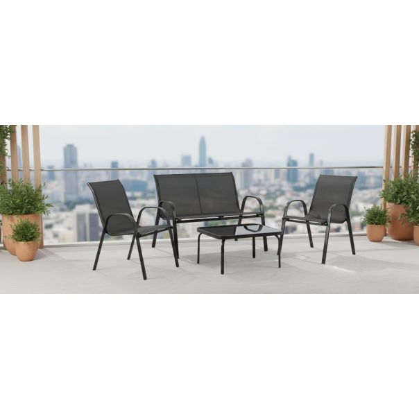 Crna boja i moderan minimalistički dizajn garniture Lagos lako se uklapaju u svaki eksterijer. Ovaj set predstavlja idealan spoj funkcionalnosti, modernog izgleda i udobnosti, čineći ga savršenim izborom za sve spoljne prostore u kojima želite da stvorite prijatnu atmosferu za odmor ili druženje.