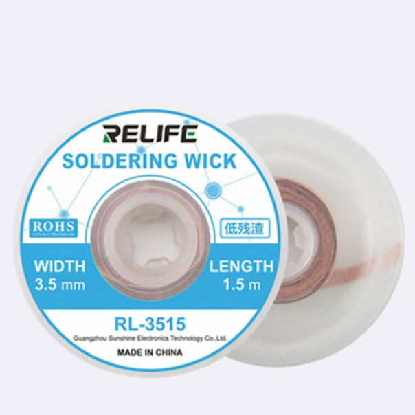 RELIFE RL-3515 pletenica Originalna pletenica Izrađena od bakra Vrlo dobro upija lem Idealna za: Odsecanje Uklanjanje viška lema i čišćenje tragova na pločama i čipovima BGA